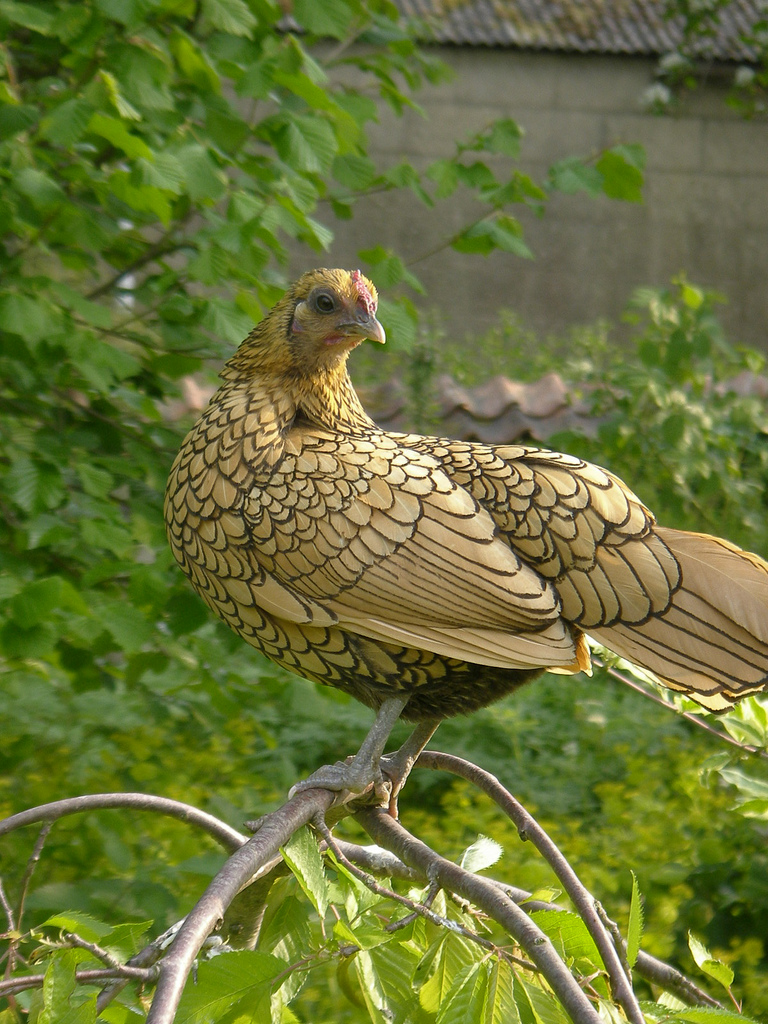 Le lapin n’est pas encore passé, et pourtant nous avons déjà des oeufs ! Les nôtres sont petits : ce sont des oeufs d’une race de poules nommée « Sebright citronnée ». C’est une petite poule d’ornement avec un magnifique plumage écaillé.