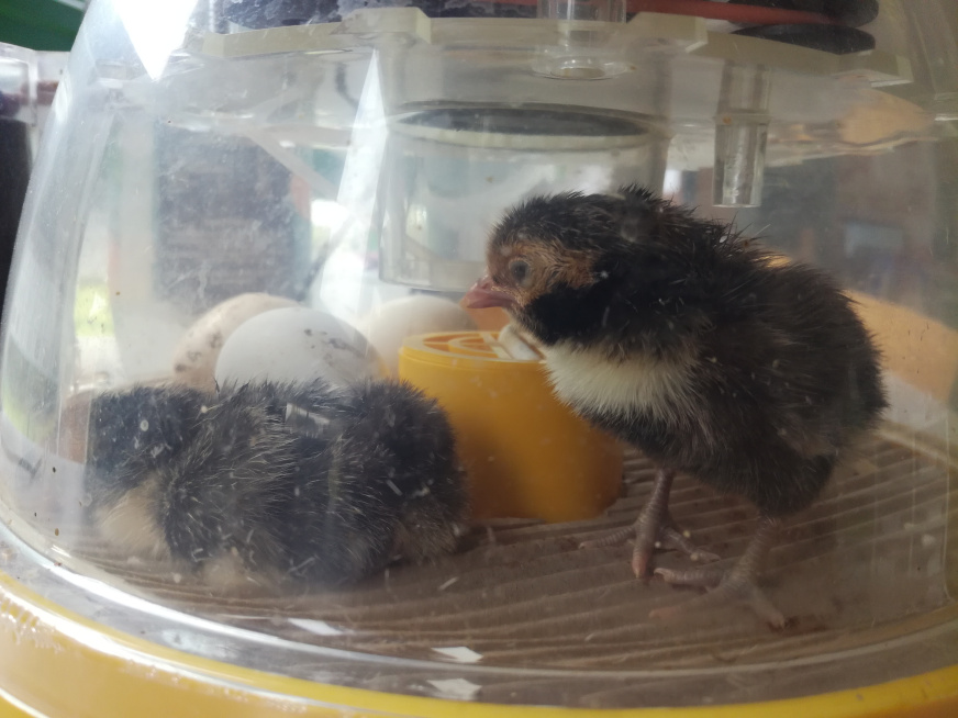 Les poussins, sortis de couveuse, ont rejoint leur domicile et leur poussinière jusqu’à ce qu’ils soient assez grands pour voler de leurs propres ailes.
