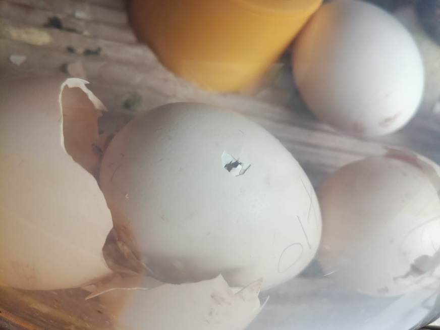 Nous avons mis 6 petits oeufs en couveuse le jeudi 17 mars. Après les avoir mirés tout au long de leur couvaison, nous savions que seuls 4 oeufs étaient fécondés. Nous avons pu voir le système sanguin se développer, et les poussins croitre. Nous en avons même vu bouger dans l’oeuf !