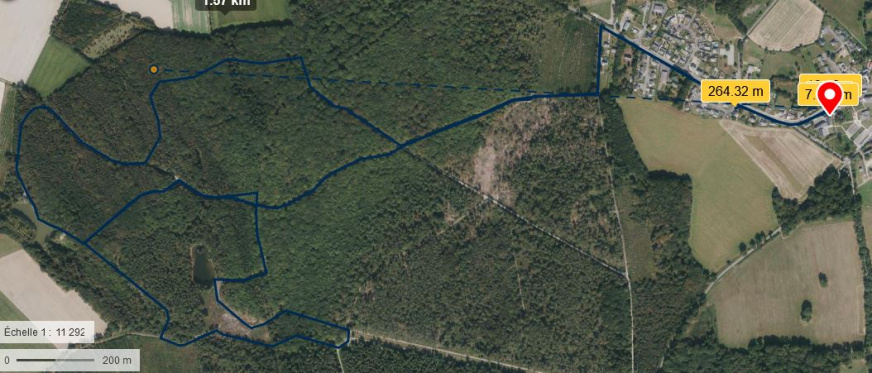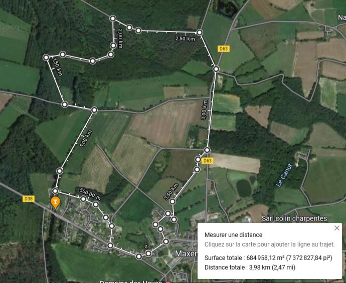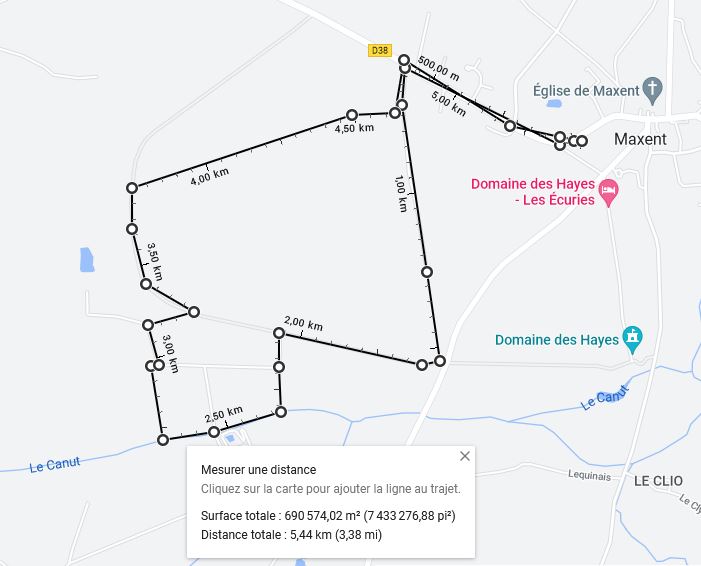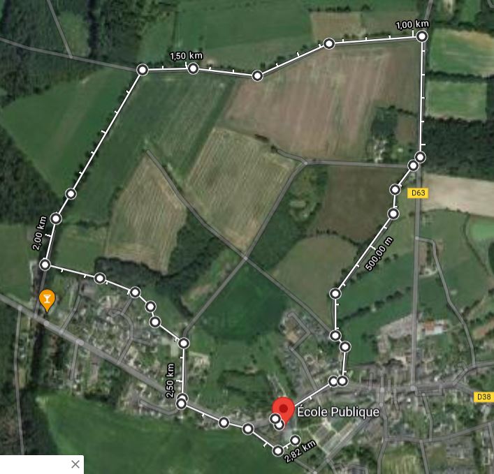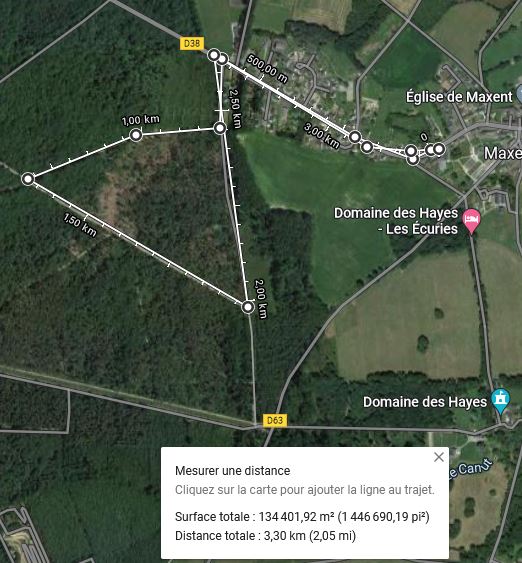 Boucle d’un peu moins de 3 km vers la forêt de Maxent et retour par le terrain de sport.