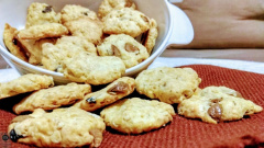 Dans un saladier, mélangez tous les ingrédients jusqu’à obtenir une pâte façonnable à la main. Si besoin, ajoutez un peu de lait ou d’eau. Former des boules et écrasez les légèrement sur une plaque de cuisson. Enfournez dans un four préchauffé à 180 degrés pendant 10 à 12 minutes.